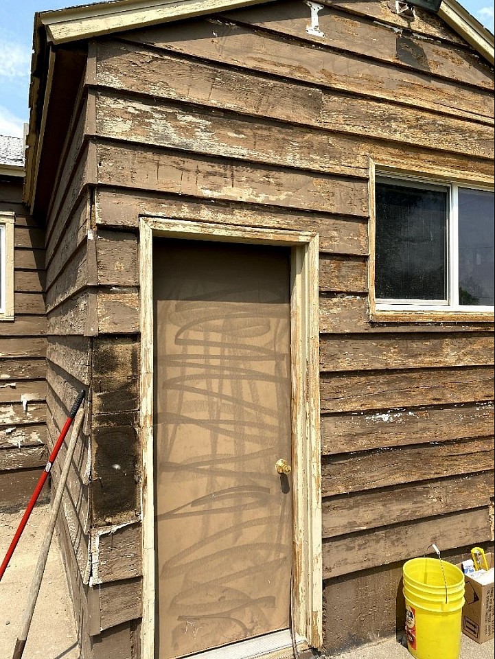 The siding on this home should have been Replaced. We used Sherwin Williams Emerald Rain Refresh to get the best function out of our paint and a quality seal Considering the condition of the Cedar siding.